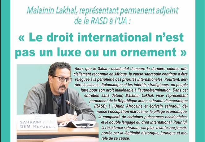 The Deputy Permanent Representative of the Sahrawi Arab Democratic Republic to the African Union and Sahrawi writer, Ambassador Malainin Lakhal, stated to the magazine of the Foundation for the Promotion of Rights, “L’Humaniste”, that the Moroccan occupation can never erase history, stressing that “the recognition of Moroccan sovereignty over Western Sahara by certain states has no legal value as long as the Sahrawi people have not freely expressed their choice.”