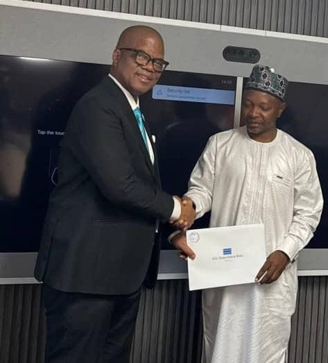 Minister for State President Moeti Mohwasa receives a letter addressed to President Duma Boko from Ras Mubarak